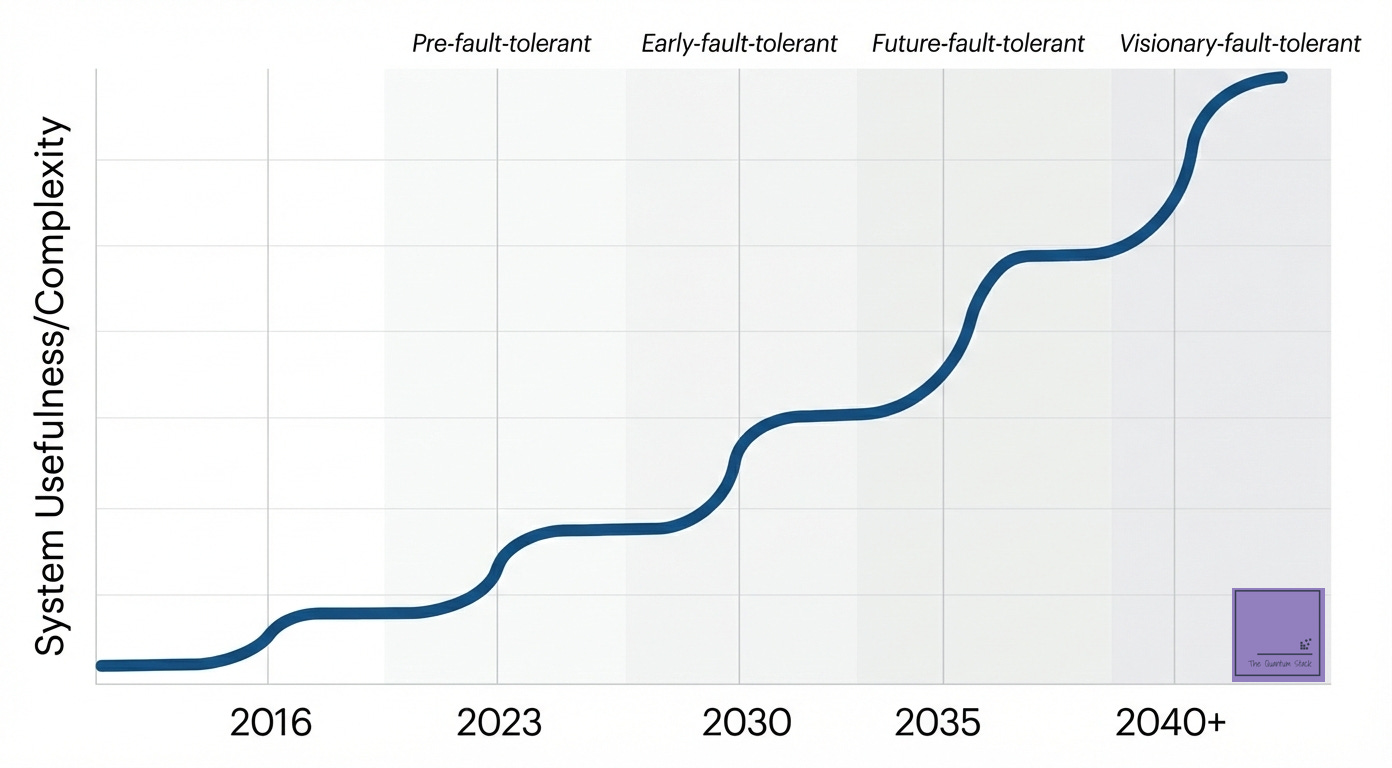 To see that another inflection point is on the horizon, we can look to the industry’s own projections. I have collated the latest roadmaps from across the field into a single reference document. This is intended not as a leaderboard of who is ‘winning,’ but as a mosaic of industry-wide conviction. While hardware approaches differ, the convergence of their timelines tells a remarkable story.